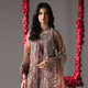 The look is completed with a flowing viscose panel shararah, heavily embellished with sequin embroidery, enhancing the overall grandeur while maintaining comfort and ease.